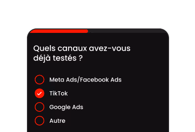 On déploie les canaux les plus performants pour votre secteur : Meta (Facebook/Instagram), TikTok Ads et Google Ads. On peut travailler sur un seul canal ou combiner plusieurs canaux pour maximiser la stabilité et réduire les coûts.